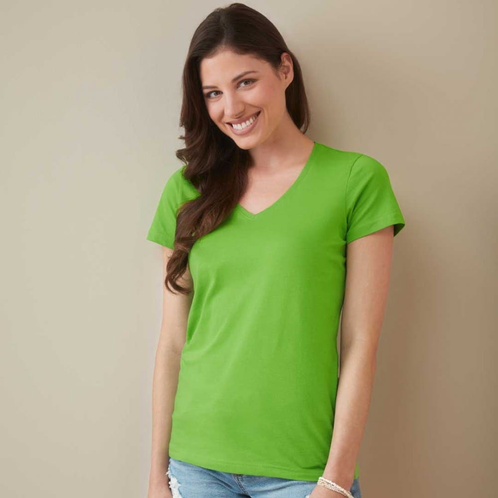 Κομψό και άνετο γυναικείο μπλουζάκι με λαιμόκοψη V από 100% ring-spun βαμβακερό ζέρσεϊ, ιδανικό για καθημερινή χρήση και διαφημιστική εκτύπωση.