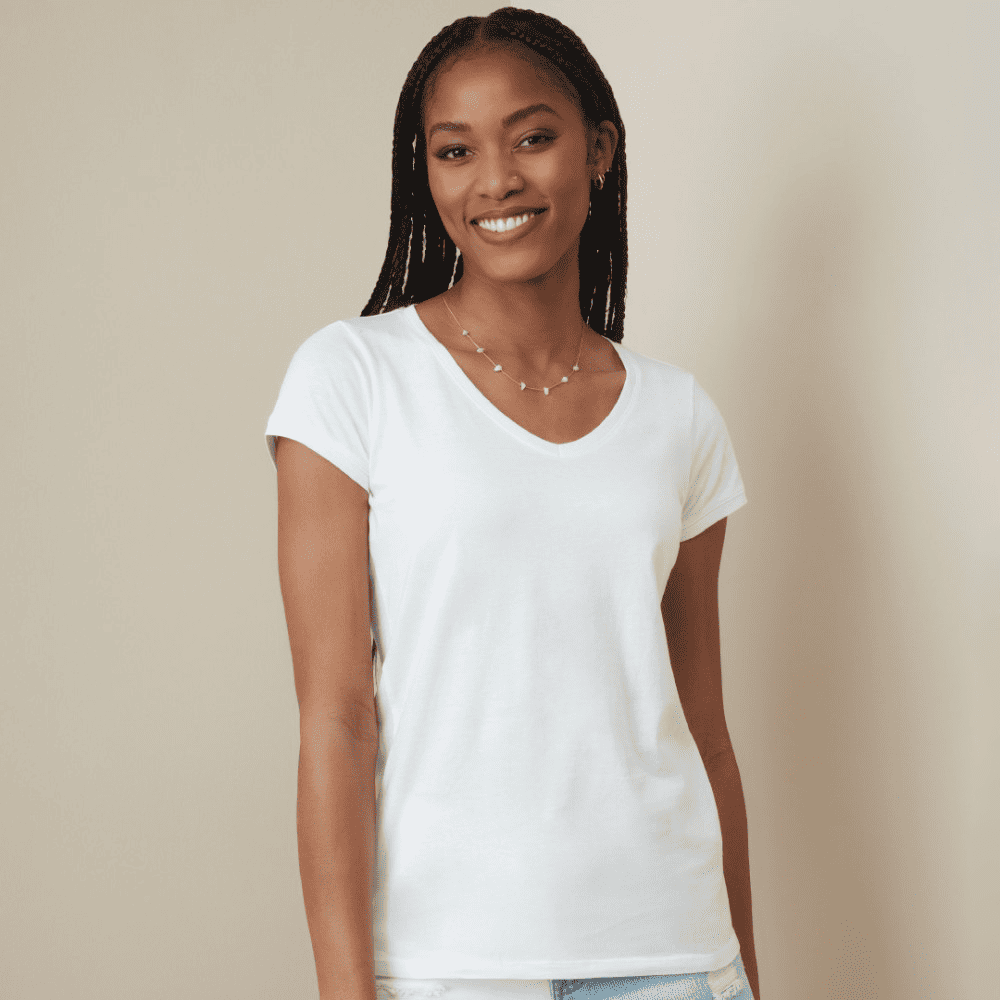 Ελαφρύ και μοντέρνο T-shirt, ιδανικό για καθημερινή χρήση και για διαφημιστικούς σκοπούς. Διαθέτει κομψή V-λαιμόκοψη και μεσάτη γραμμή (body fit) που αναδεικνύει τη σιλουέτα. Κατασκευασμένο από μαλακό και ανθεκτικό ύφασμα single jersey.