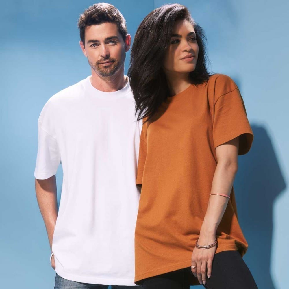 Unisex T-shirt βαρέως τύπου 230g/m² από 100% βαμβάκι πενιέ ringspun με φαρδιά, oversized γραμμή.